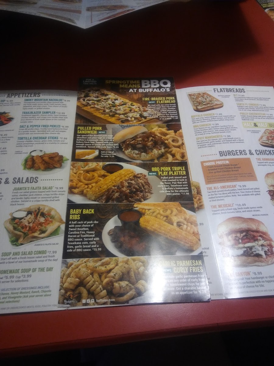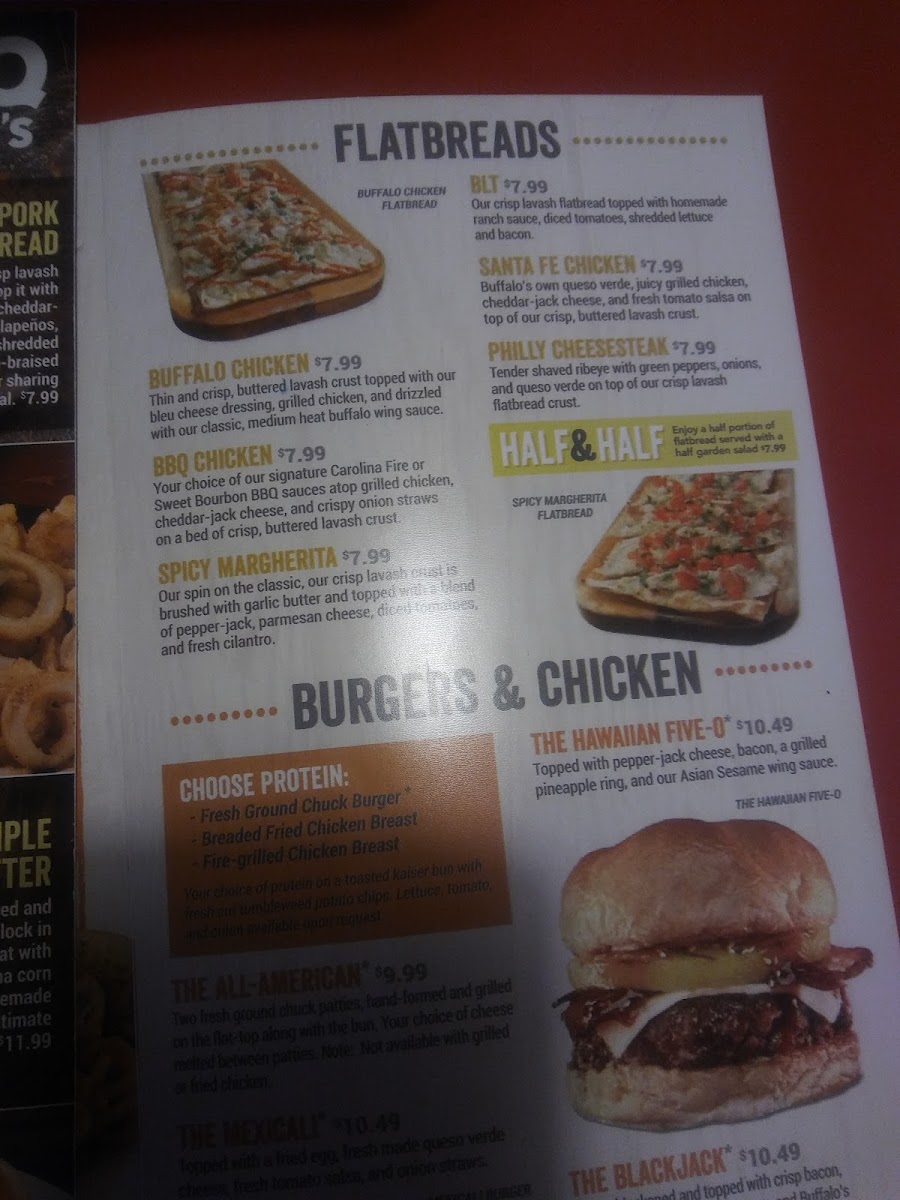 bacon • cheddar jack cheese • black bean • corn salsa • bleu cheese crumbles • pico de gallo • fire-grilled chicken • tortilla strips • garlic bread.