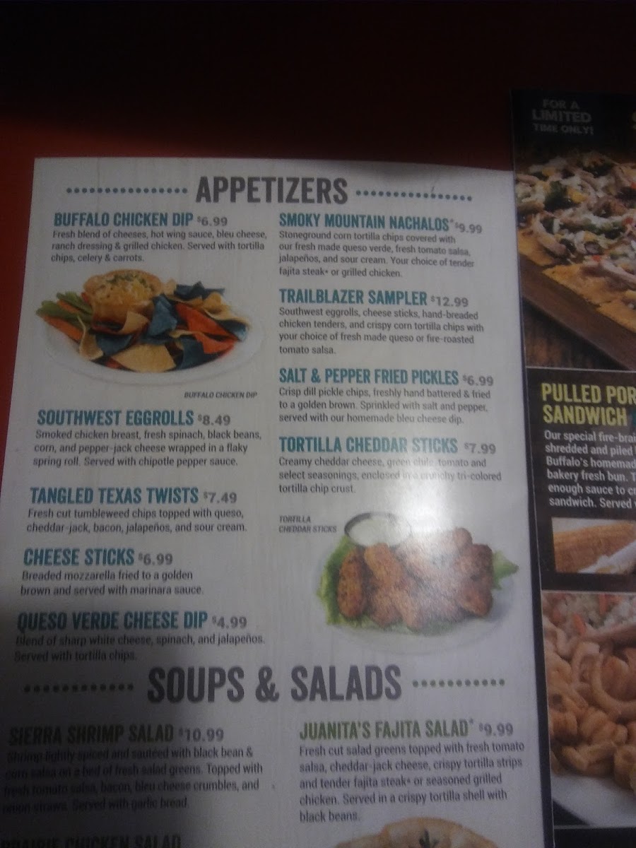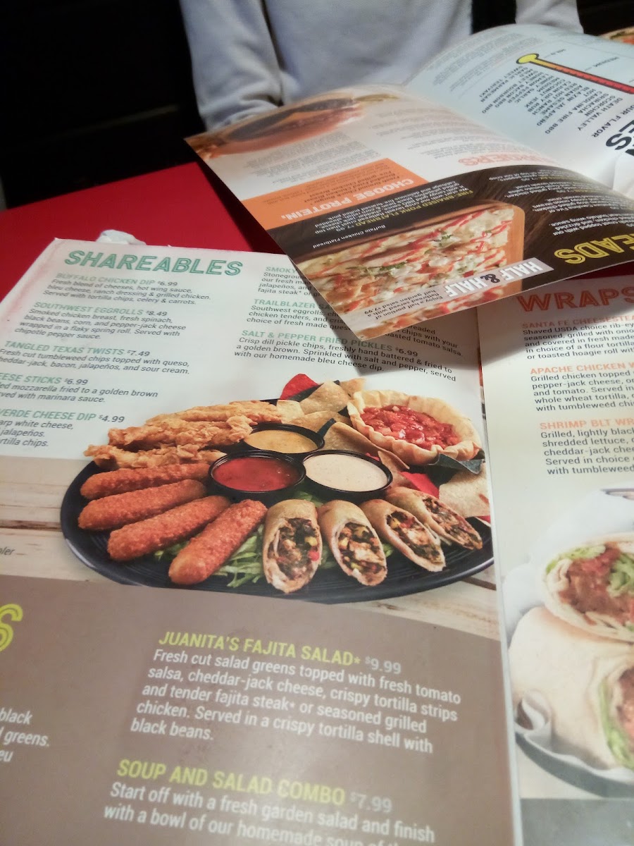 Two soft shell tacos with your choice of grilled chicken, grilled shrimp or chopped ground chuck • shredded lettuce • pico de gallo • shredded cheddar jack cheese • chipotle ranch • Served with fresh-cut tumbleweed potato chips.